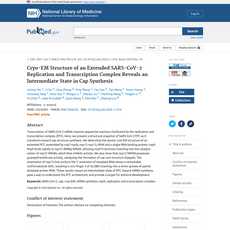 1. Researchers have determined the atomic cryo-EM structure of an extended SARS-CoV-2 replication and transcription complex (RTC) assembled by nsp7-nsp82-nsp12-nsp132-RNA and a single RNA-binding protein, nsp9.