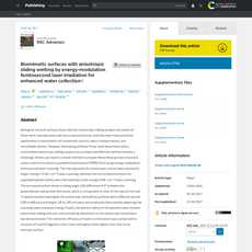 1. This article discusses a method of fabricating artificial three-level biosurfaces with anisotropic sliding properties using energy-modulation femtosecond laser scanning.