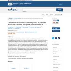 The article “Treatment of direct oral anticoagulants in patients with liver cirrhosis and portal vein thrombosis” provides an overview of the current knowledge about the efficacy, safety concerns, and hepatic metabolism of DOACs in patients with cirrhosis and PVT. The article is written by Ho Soo Chun et al., published in Clin Mol Hepatol 2021 Oct;27(4):535-552.