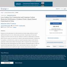 1. This study examines the effects of low-carbon city construction on corporate carbon reduction performance in China.