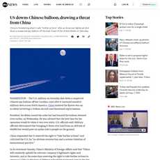 1. The US military shot down a suspected Chinese spy balloon off the Carolina coast after it traversed sensitive military sites across North America.