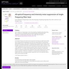 1. This article discusses the development of an all-optical frequency and intensity noise suppression system for single-frequency fiber lasers.