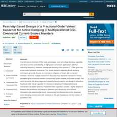 1. This article presents the passivity-based design of a fractional-order virtual capacitor for active damping of multiparalleled grid-connected current-source inverters.