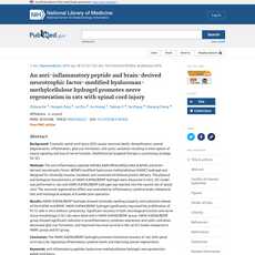 1. A novel anti-inflammatory peptide and brain-derived neurotrophic factor modified hyaluronan-methylcellulose hydrogel was designed to promote neural regeneration in rats with spinal cord injury.