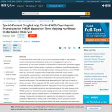 The article provides an overview of the research conducted on speed-current single loop control with overcurrent protection for PMSM based on time-varying nonlinear disturbance observer. The article presents a comprehensive review of existing literature related to this topic, as well as an analysis of the advantages and disadvantages of each approach discussed. The authors provide a detailed description of their proposed method, including its design process, stability analysis, and comparative simulations and experiments.