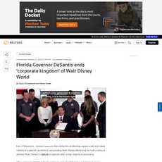 1. Florida Governor Ron DeSantis has signed a bill that takes control of the special tax district surrounding Walt Disney World, ending its autonomy.