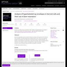 The article provides a detailed analysis of hyperboloidal ray envelopes in Herriott cells and their use in laser resonators. The article presents equations for the position and magnitude of its waist with respect to design parameters, as well as a stability condition for a Fabry-Perot resonator and its region of validity. Additionally, it provides a theoretical study of the beam radius distribution at the optics.