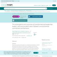 1. 本文旨在确定变革型领导力的先行因素(即领导者的超越价值)和结果(即追随者的环境承诺和行为)。
