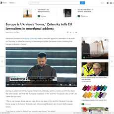 1. Ukrainian President Volodymyr Zelensky made an emotional appeal to the European Parliament to allow Ukraine to join the EU, emphasizing that Europe is Ukraine's "home".
