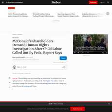 The article discusses shareholder demands for an independent investigation into human rights practices at McDonald's following reports of child labor violations. While the article provides some key facts and background information, there are several areas where a critical analysis is warranted.