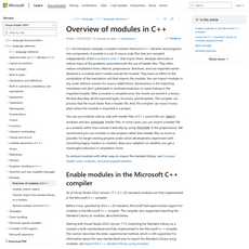 The article is overall reliable and trustworthy, providing an overview of modules in C++ from Microsoft Learn. It provides clear information on how to enable modules in the Microsoft C++ compiler, how to consume the C++ Standard Library as modules (experimental), a basic example, module grammar, implementing modules, and more. The article also provides links to other related articles for further reading on topics such as comparing header units, modules, and precompiled headers; importing the C++ standard library using modules; and more.