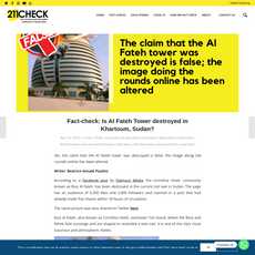 1. The claim that the Al Fateh tower in Khartoum, Sudan was destroyed is false; the image circulating online has been altered.