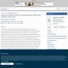 The article provides an overview of research into the North Atlantic Oscillation (NAO) and its impacts on regional and hemispheric climates in the Northern Hemisphere. It presents evidence for an upward trend in the NAO over the second half of the twentieth century, as well as a decrease since the 1990s, which has been linked to extreme cold temperatures in this region. The article also discusses various factors that have been suggested to account for these interdecadal variations, such as greenhouse gas emissions and warming in tropical oceans, but notes that neither of these can explain the recent downward trend. Finally, it suggests that there is a two-way interaction between the NAO and Atlantic meridional overturning circulation (AMOC), with the NAO leading by 15–20 years.