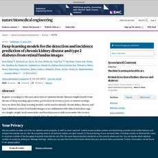 1. This article discusses the development and deployment of deep-learning models for the detection and incidence prediction of chronic kidney disease and type 2 diabetes from retinal fundus images.