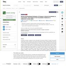 The article titled "Remote Sensing-Based Estimates of Changes in Stored Groundwater at Local Scales: Case Study for Two Groundwater Subbasins in California's Central Valley" discusses the use of remote sensing data to estimate changes in groundwater storage at local scales. The authors highlight the importance of timely and accurate estimates of groundwater storage changes for sustainable groundwater management. They argue that traditional methods, such as groundwater models and well-based measurements, are time-consuming and expensive, leading to lagged data collection. Remote sensing measurements offer a potential solution by quantifying changes in groundwater storage through the water balance method.