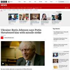 1. Boris Johnson revealed that Vladimir Putin threatened him with a missile strike in a phone call before Russia's invasion of Ukraine.