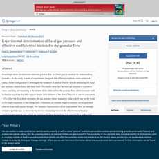 The article “Experimental determination of basal gas pressure and effective coefficient of friction for dry granular flow” is a research paper published in Acta Geotechnica in February 2023. The article presents an experiment designed to investigate the dynamics of particle flow by directly measuring the basal gas pressure, normal force, and shear force under different conditions. The authors provide evidence from their experiments that show that the basal gas pressure is a positive value which increases with inclination angle but has little support for the solid skeleton of the flow. They also present evidence that suggests an inverse relationship between effective basal friction coefficient and particle size, which they explain with force fluctuations.