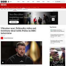 1. Ukraine's President Volodymyr Zelensky has ruled out giving up any of his country's territory in a potential peace deal with Russia.