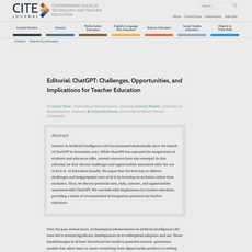 The article "Editorial: ChatGPT: Challenges, Opportunities, and Implications for Teacher Education" provides a comprehensive overview of the potential uses and risks associated with the AI writing tool ChatGPT. The article highlights the benefits of using ChatGPT for both teachers and students, including personalized learning support, creative thinking support, assessment support, and reading and writing comprehension support. However, the article also acknowledges several risks associated with using ChatGPT, such as plagiarism, harmful and biased content, equity and access issues, trustworthiness of AI-generated content, and overreliance on the tool for assessment purposes.