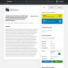 The article “Ultrafast and continuous synthesis of phase change nanocapsules by salt-accelerated microwave-assisted polymerization” is a well written and comprehensive overview of a new method for the rapid, large-scale preparation of NanoPCMs (nanoencapsulated phase change materials) for thermal energy storage. The article provides detailed information on the process and results of this method, including its use of microwave-assisted polymerization with cross-linked poly(methyl methacrylate) and phase change material n-octadecane as the shell and core materials, respectively; sodium chloride being used as a microwave sensitizer to control the particle size of the NanoPCMs; and resulting in uniform, spherical, core-shell structures with high latent heat storage capacity and good thermal stability.