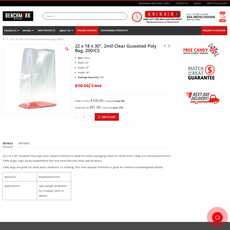 1. The product is a clear gusseted poly bag with dimensions of 22 x 18 x 30 inches and a thickness of 2 mil.