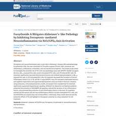 This article provides a comprehensive overview of Forsythoside A (FA), a compound found in Forsythia suspensa that has anti-inflammatory, antibacterial, antioxidant, and neuroprotective properties. The authors conducted experiments using male APP/PS1 double transgenic AD mice as well as various cell lines to investigate its potential role in Alzheimer's disease (AD) neuropathology. The results showed that FA treatment improved mitochondrial function and inhibited lipid peroxidation in Aβ1-42-exposed N2a cells; decreased the formation of pro-inflammatory factors in LPS-stimulated BV2 cells; ameliorated memory and cognitive impairments; suppressed Aβ deposition and p-tau levels in the brain of male APP/PS1 mice; augmented dopaminergic signaling; inhibited iron deposition and lipid peroxidation; prevented the activation of inflammatory pathways; reduced the secretion of pro-inflammatory factors; and promoted the production of anti-inflammatory factors in the brain.