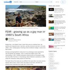 1. The article is about the author's experience growing up as a gay man in South Africa during the Apartheid era.