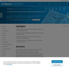 1. This article presents a cellular taxonomy of the adult human spinal cord using single-nucleus RNA sequencing with spatial transcriptomics and antibody validation.