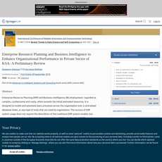 1. This article examines the potential of Enterprise Resource Planning (ERP) and Business Intelligence (BI) systems to enhance organizational performance in the private sector of Saudi Arabia.