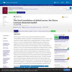 The article provides an overview of transnational regulatory frameworks that have been developed in response to civil conflict, human insecurity, state failure and environmental degradation linked to natural resource extraction. It then focuses on one particular example – the Kimberley Process Certification Scheme (KPCS) – and its implementation in Sierra Leone as a case study for understanding how global norms are translated into local governance practice. The article is well-researched and provides a comprehensive overview of relevant literature on this topic. However, there are some potential biases that should be noted. For instance, while it does provide an overview of different global governance initiatives targeting natural resource markets, it does not explore any counterarguments or criticisms that have been raised against these initiatives or their implementation in Sierra Leone specifically. Additionally, while it does note some potential risks associated with these initiatives, such as their reliance on voluntary participation from companies or governments, it does not provide any evidence for how these risks have been addressed or mitigated in Sierra Leone specifically. Furthermore, while it does provide an overview of different global governance initiatives targeting natural resource markets, it does not explore any other possible solutions or alternatives that could be employed instead or alongside them. In conclusion, while this article provides a comprehensive overview of relevant literature on this topic and offers useful insights into how global norms can be translated into local governance practice in resource-producing countries such as Sierra Leone, there are some potential biases that should be noted when considering its trustworthiness and reliability.