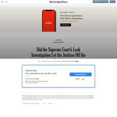 The article “Did the Supreme Court’s Leak Investigation Let the Justices Off the Hook?” by Aaron Tang is an opinion piece that examines the Supreme Court's report on its investigation into a leaked draft opinion in Dobbs v. Jackson Women’s Health Organization. The article raises important questions about why nine specific individuals who had access to the draft opinion – namely, the Supreme Court justices – were not questioned during this investigation.
