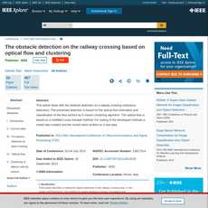 本文是一篇关于铁路道口区域障碍物检测方法的学术论文,由IEEE Conference Publication出版。作者介绍了一个使用光流和聚类来实现障碍物检测的方法,并对其进行详尽的分析。