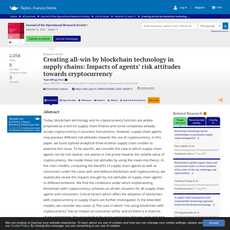1. This paper examines the impacts of supply chain agents’ risk attitudes towards cryptocurrency on the use of blockchain technology in supply chains.