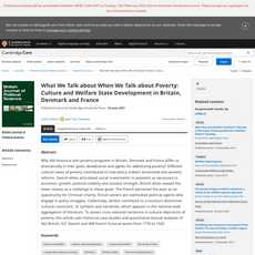 3. This article explores these diverse views of poverty and develops a theoretical model of cultural work to explain the differences in anti-poverty interventions across Britain, Denmark and France.