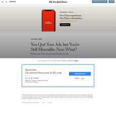 The article “You Quit Your Job, but You’re Still Miserable. Now What?” is generally reliable and trustworthy, as it provides insights from experts on how to deal with feelings of burnout after quitting a job. The article is well-written and provides an interesting narrative about Sam Palmer-Simon's experience with burnout, which serves as an example for readers who may be struggling with similar issues. The article also offers practical advice from experts on how to address these issues, such as setting boundaries and creating new routines to mitigate stress.