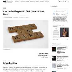 L'article "Les technologies du faux : un état des lieux" fournit une bonne introduction à la question de la manipulation et de la tromperie à travers les âges et comment l'intelligence artificielle peut amplifier ces pratiques. L'auteur explique clairement ce qu'est un deepfake et comment il est créé en utilisant des GAN (Generative Adversarial Network). Cependant, il ne mentionne pas certains points importants qui devraient être pris en compte pour comprendre pleinement le sujet. Par exemple, bien que l'auteur souligne que la manipulation n’a pas nécessairement besoin de s’appuyer sur le faux pour être efficace, il ne discute pas suffisamment des implications éthiques et morales liées à cette pratique ni ne mentionne les risques potentiels associés à son utilisation abusive. De plus, bien qu'il cite certaines sources pour appuyer ses arguments, il ne donne pas suffisamment de preuves pour étayer ses affirmations et ne mentionne pas non plus les contre-arguments possibles qui pourraient être faits contre sa thèse principale. Enfin, bien qu’il aborde brièvement le sujet du “nudge marketing” comme moyen d’influencer une cible, il ne discute pas suffisamment du rôle joué par les réseaux sociaux dans ce domaine ni des implications éventuelles sur la liberté individuelle et la protection de la vie privée.