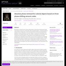 1. This article proposes an absolute phase retrieval method based on three phase-shifting amount codes (3-PSA-codes) to measure colored objects with one additional pattern.