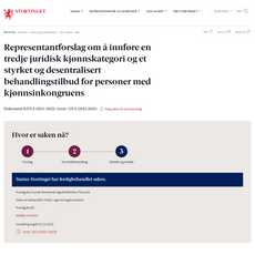 1. Forslag fra Grunde Almeland og Ingvild Wetrhus Thorsvik fra Venstre om å innføre en tredje juridisk kjønnskategori og et styrket og desentralisert behandlingstilbud for personer med kjønnsinkongruens ble behandlet i Stortinget.