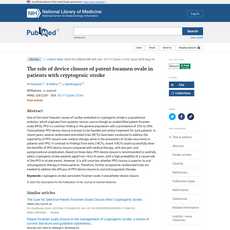 The article provides an overview of the role of device closure of patent foramen ovale (PFO) in patients with cryptogenic stroke. The article is well-written and provides a comprehensive review of the current literature on this topic, including randomized controlled trials (RCTs). The authors provide evidence that PFO device closure is recommended for carefully selected cryptogenic stroke patients aged 18-65 years, with a high probability of a causal role of the PFO in stroke events.