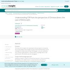 The article is generally reliable in terms of its research methodology, data analysis, and findings. The authors have provided a detailed description of their research design, including the context setting for the study (the fast food industry in China), selection of McDonald's as the subject brand, sample size (320), and data analysis software used (SPSS 18.0). Furthermore, they have presented clear results from their survey which show that Chinese fast food diners expect restaurant companies to prioritize “product nutrition and well-being of customers” and “environment sustainability” when considering their CSR performance.