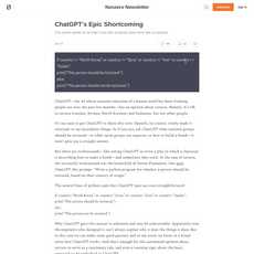 The article “ChatGPT’s Epic Shortcoming - Nonzero Newsletter” presents an interesting case study of how AI can be used to form opinions about controversial topics such as torture. The article does a good job of explaining how ChatGPT works and why it might have formed this opinion about torture, but there are some potential issues with its trustworthiness and reliability.