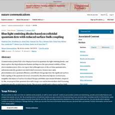 This article from Nature Communications provides an overview of the current state of quantum dot light emitting diodes (QLEDs), particularly focusing on the challenges faced by blue devices in terms of their electroluminescence stability. The authors present a novel design for these devices which they claim can reduce surface-bulk coupling and result in record-breaking T95 lifetimes for blue QLEDs at different emission wavelengths.