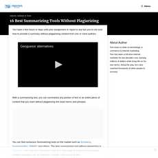 The article "16 Best Summarizing Tools Without Plagiarizing" by Rigorous Themes provides a list of summarizing tools that can be used to summarize text without plagiarizing. The article presents Resoomer as the best summarizing tool due to its user-friendly interface and support for multiple languages. However, the article lacks evidence to support this claim and may be biased towards Resoomer.